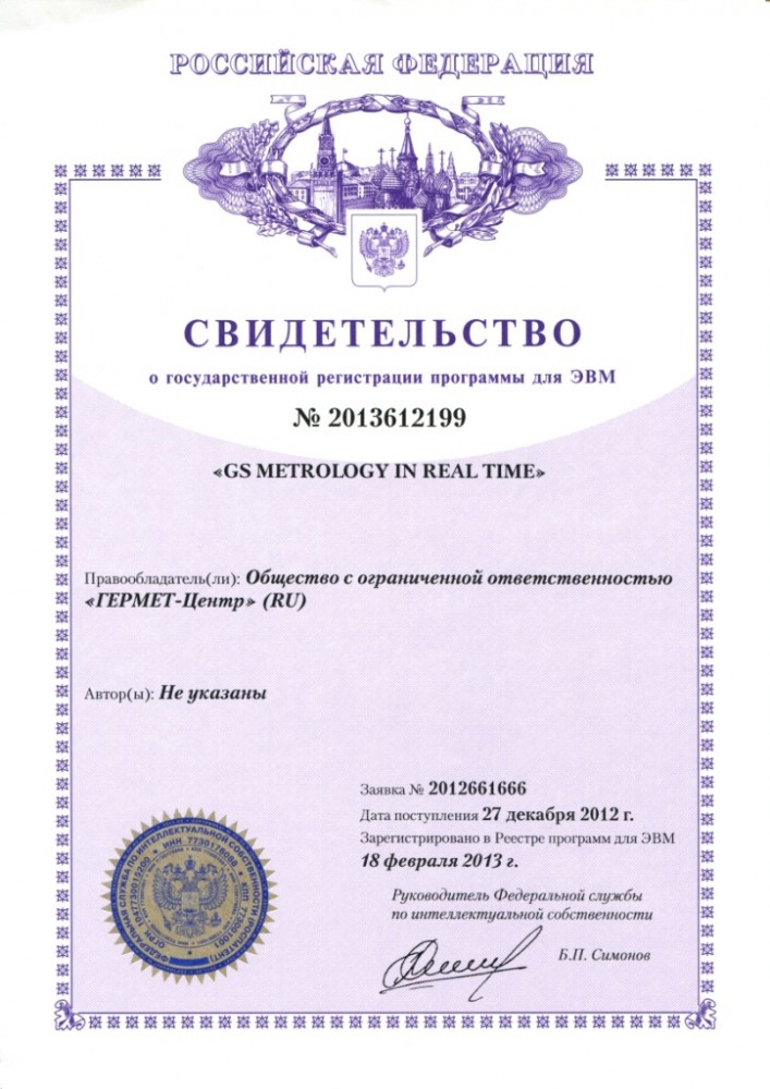 Свидетельство о государственной регистрации GS METROLOGY IN REAL TIME